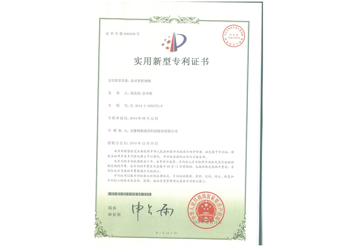 專利密集型產(chǎn)品認(rèn)定-閘閥