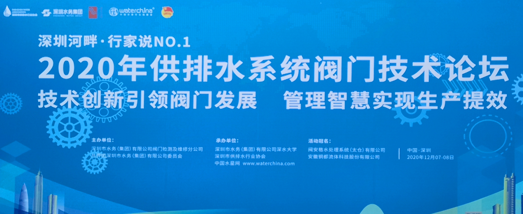 12月7-8日,深圳市水務集團聯(lián)合深圳市供排水行業(yè)協(xié)會主辦,由銅都流體冠名的“2020年供排水系統(tǒng)閥門技術(shù)論壇”在深圳市順利舉辦。