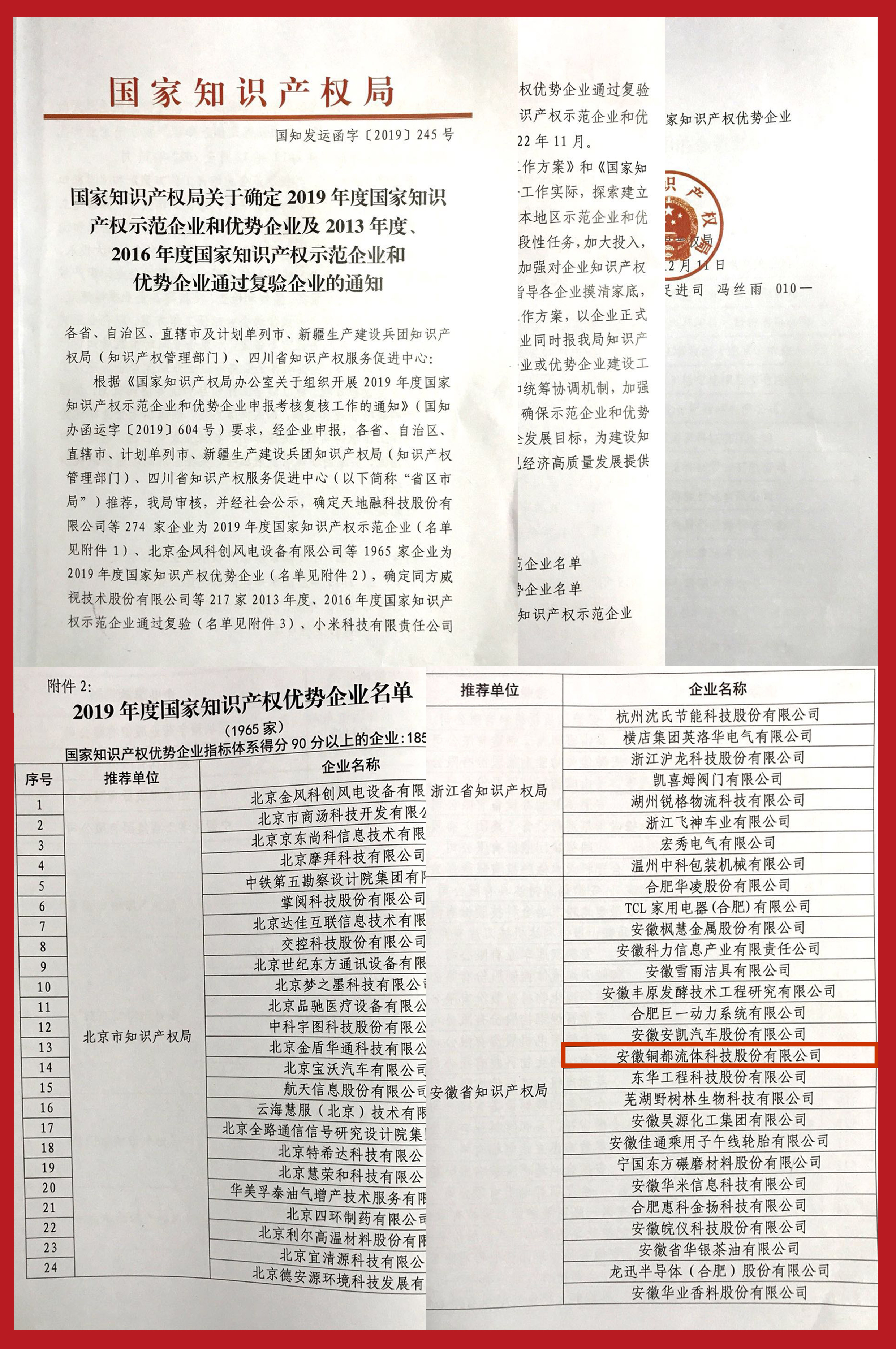 日前,國家知識(shí)產(chǎn)權(quán)局下發(fā)通知,公布了2019年度國家知識(shí)產(chǎn)權(quán)優(yōu)勢示范企業(yè)名單。銅都流體憑借良好的知識(shí)產(chǎn)權(quán)管理體系和強(qiáng)大的自主創(chuàng)新實(shí)力,榮獲“2019年度國家知識(shí)產(chǎn)權(quán)優(yōu)勢企業(yè)”稱號(hào)。
