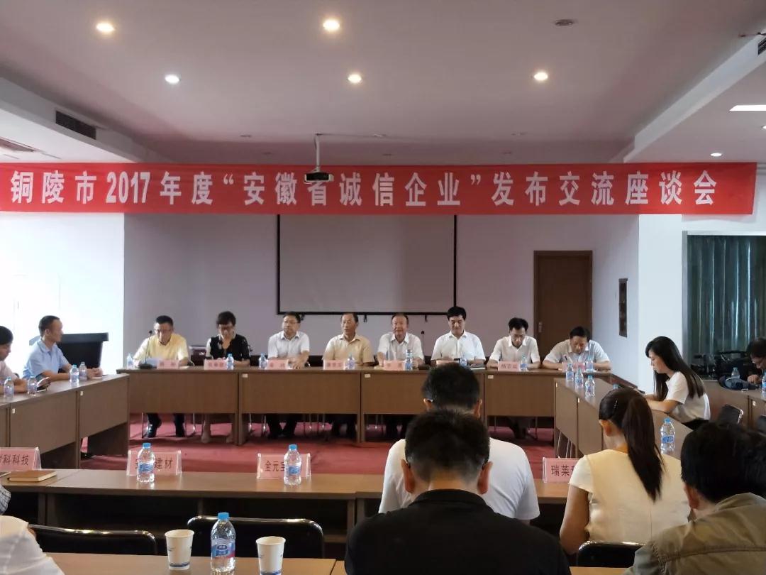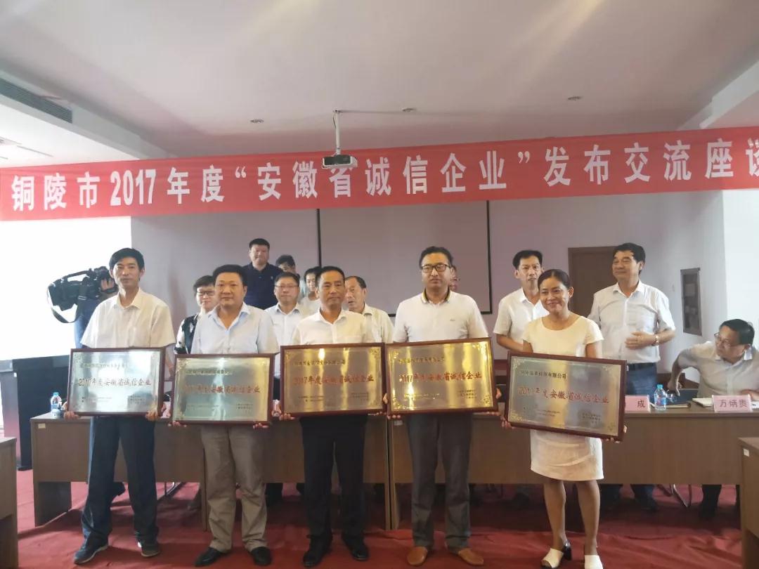 2018年7月6日,"安徽省誠(chéng)信企業(yè)"發(fā)布交流會(huì)在安徽銅都流體科技股份有限公司隆重舉行。我公司榮獲"2017-2018年度"安徽省誠(chéng)信企業(yè)"。
