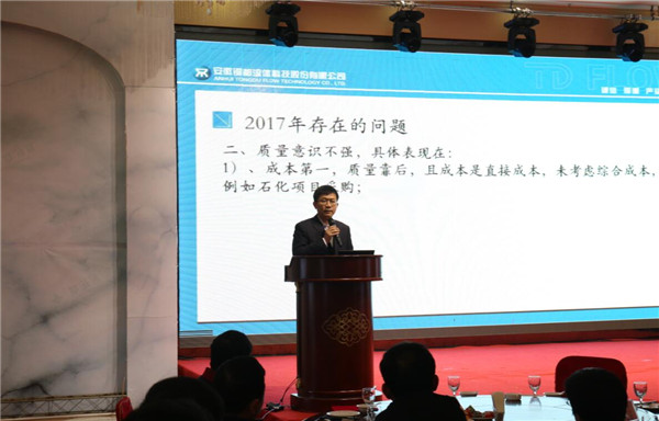 年會(huì)上,公司副總經(jīng)理?xiàng)盍杞茏?017年度營(yíng)銷工作報(bào)告, 公司總經(jīng)理趙小虎對(duì)2017年度工作作了全面總結(jié),充分肯定了公司近三年來各項(xiàng)核心指標(biāo)均實(shí)現(xiàn)兩位數(shù)增長(zhǎng)的成績(jī),指出了目前管理工作中存在的不足,提出了具體改進(jìn)措施,并明確了2018年核心經(jīng)營(yíng)目標(biāo)。公司董事長(zhǎng)楊成結(jié)合行業(yè)及公司當(dāng)前發(fā)展趨勢(shì),從公司長(zhǎng)遠(yuǎn)發(fā)展、做大做強(qiáng)戰(zhàn)略高度,深刻分析了銅都流體面臨嚴(yán)峻的挑戰(zhàn)形勢(shì),并指明企業(yè)的發(fā)展策略以及發(fā)展措施,并號(hào)召全體員工不忘初心,繼續(xù)發(fā)力,使銅都流體新年再上新臺(tái)階。