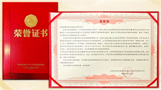 收到北京自來水集團來信感謝