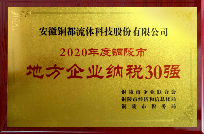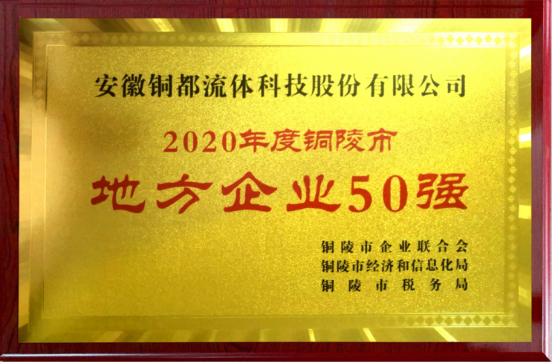 銅陵市縣(區(qū))經(jīng)信局、稅務(wù)局、縣(區(qū))企聯(lián)、開(kāi)發(fā)區(qū)企業(yè)服務(wù)局開(kāi)展的2020年度銅陵市“地方企業(yè)50強(qiáng)”、“納稅30強(qiáng)”評(píng)選活動(dòng)名單出爐,銅都流體榜上有名。