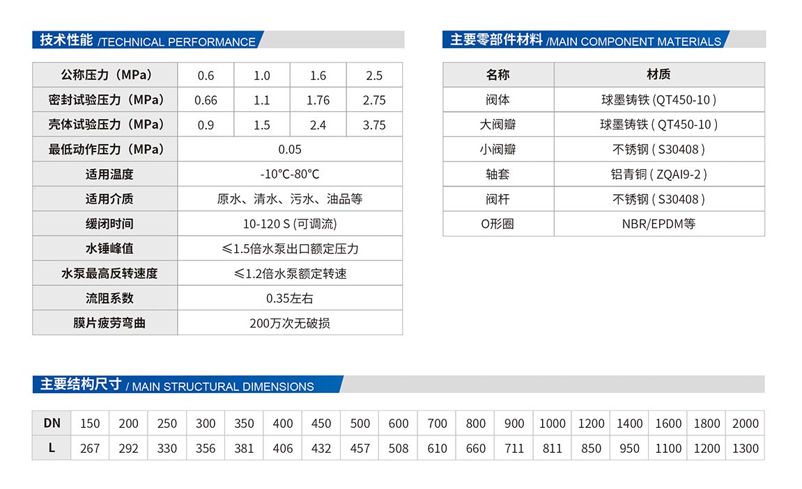 1、當(dāng)水泵開(kāi)啟或停止時(shí),利用閥門兩端的介質(zhì)壓力差作為驅(qū)動(dòng)和控制動(dòng)力,無(wú)需人力、電力、電磁等方式控制,使閥門動(dòng)作自動(dòng)按水泵操作規(guī)程要求進(jìn)行動(dòng)作。